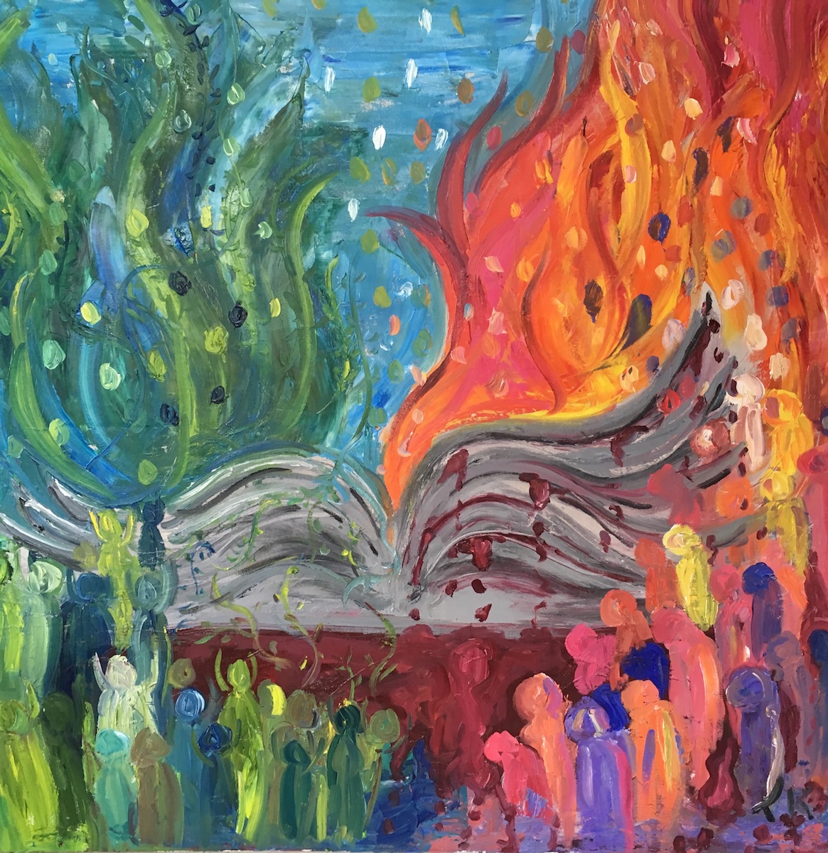The stone flame within this 6-shaped tear is a small memorial, a permenant Yartzeit flame, for the six thousand thousands who were taken